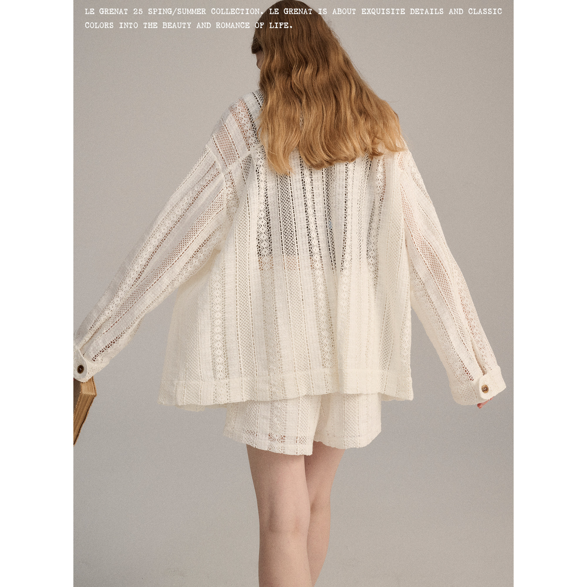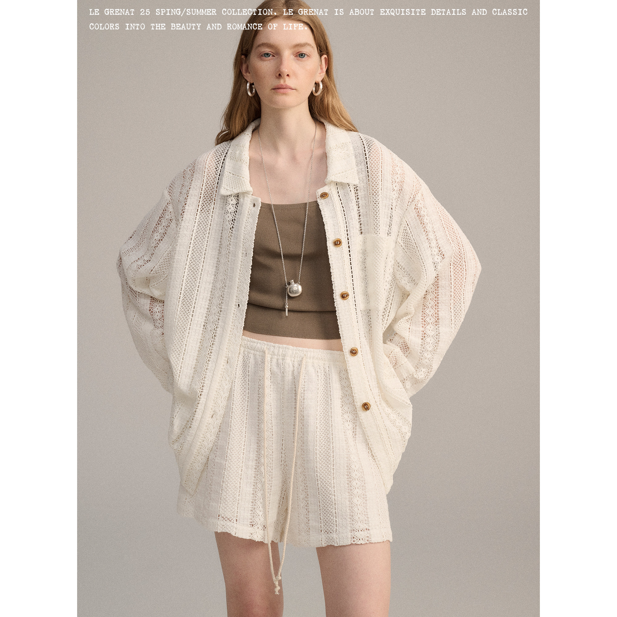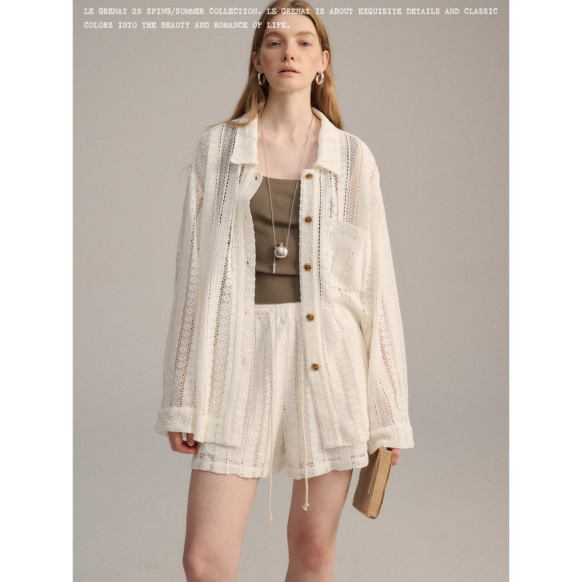 抽绳松紧短裤 外套罩衫 女设计感老钱风镂空蕾丝衬衫 LeGrenat夏季