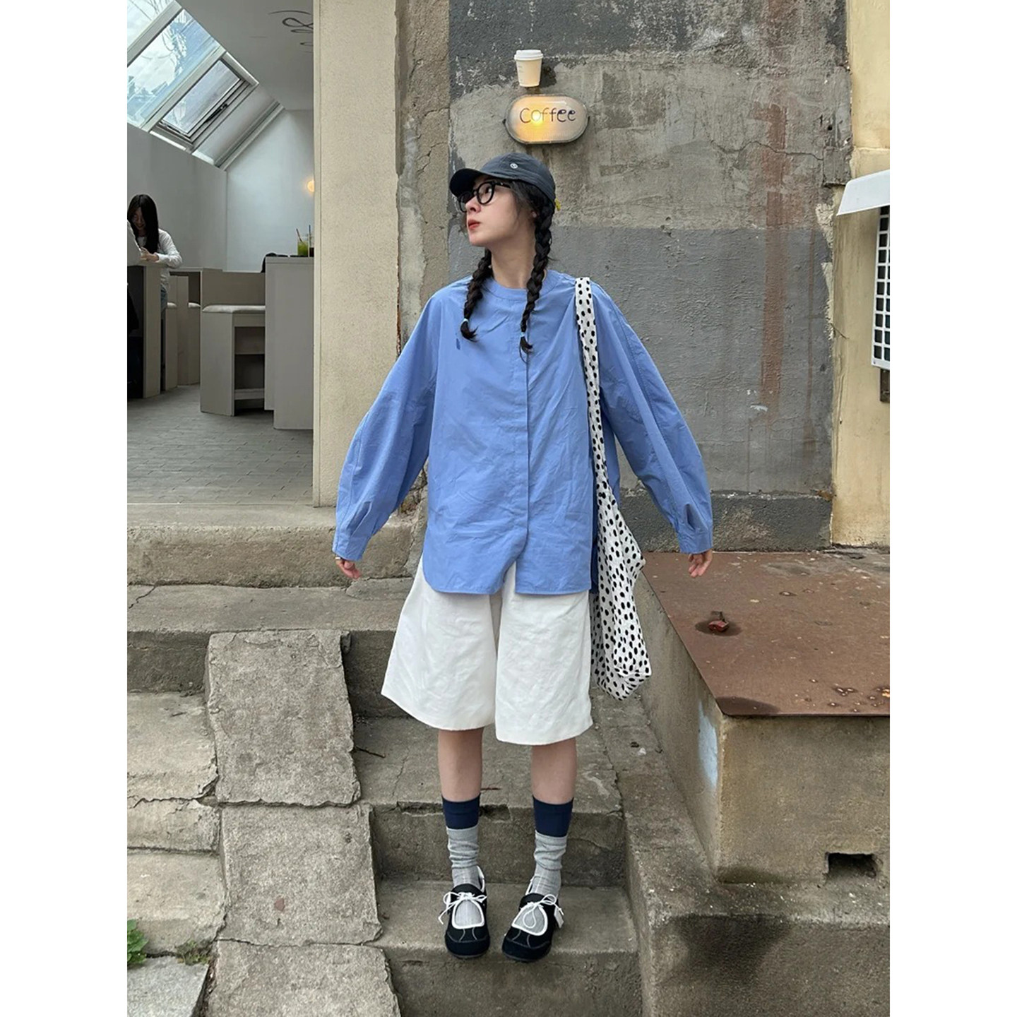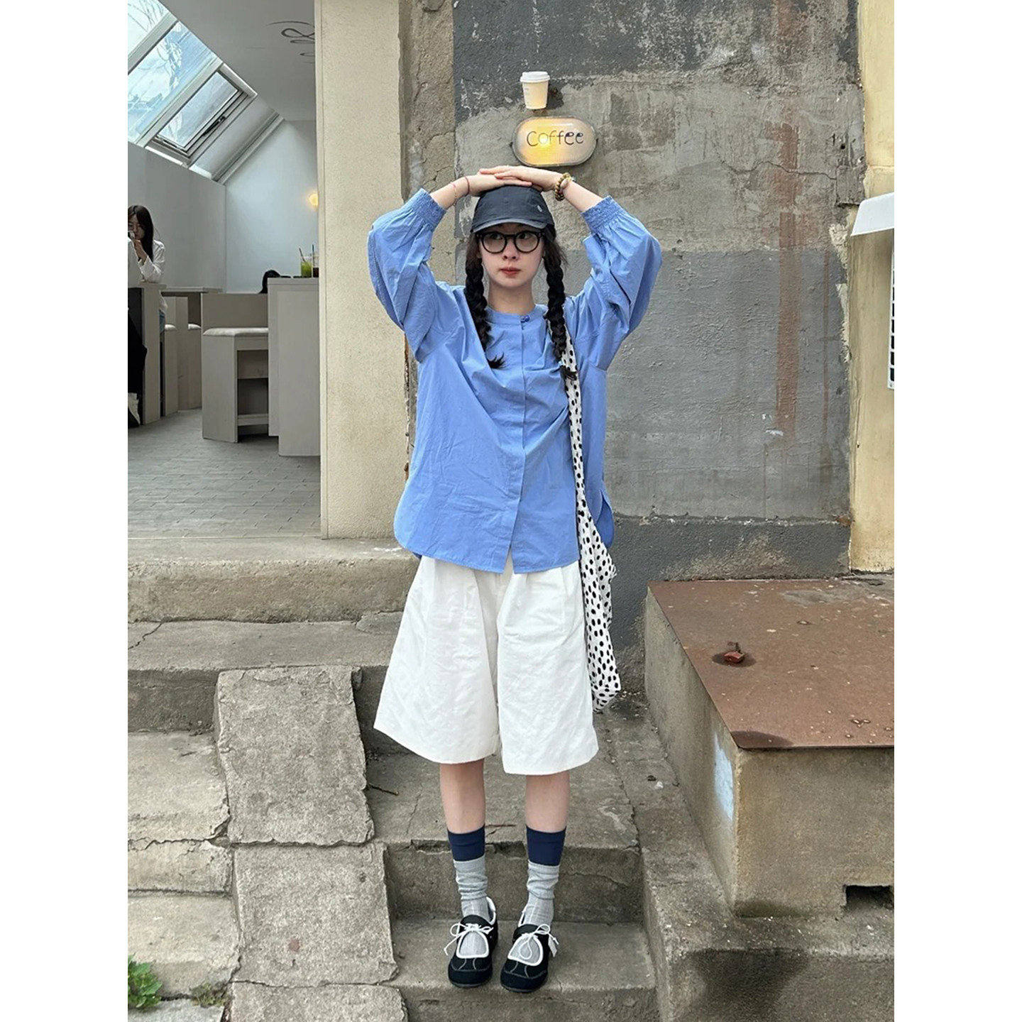 女夏学院风松弛感高腰休闲直筒短裤 自制日系工装 风白色阔腿五分裤
