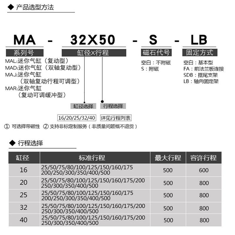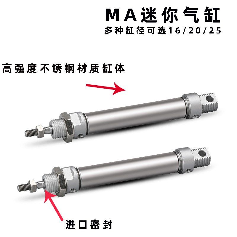 不锈钢迷你气缸MA32X25X50X75X100X125X150x200x300X500 SCA