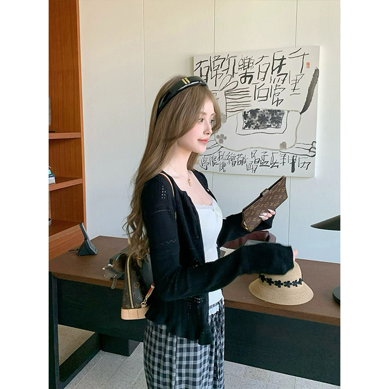MosesQueen魔西女王缕空针织开衫 春秋外搭防晒外套吊带两件套上衣
