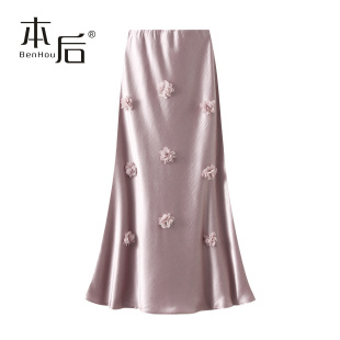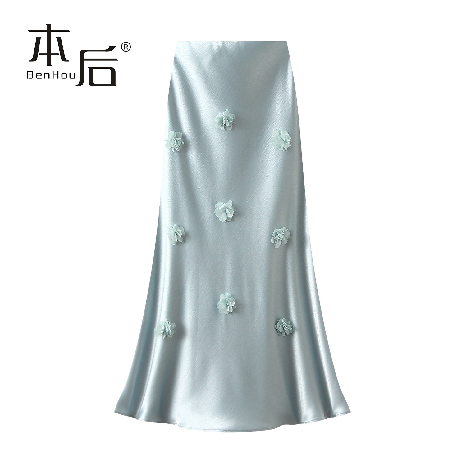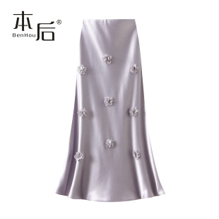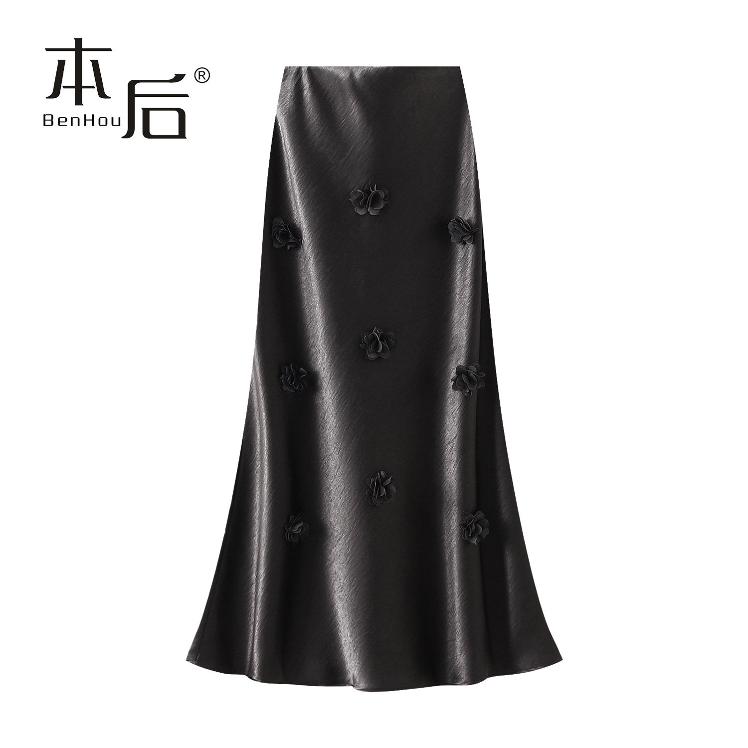 重工立体花朵鱼尾半身裙秋女长裙2025新款 D9981 高腰 本后 BenHou