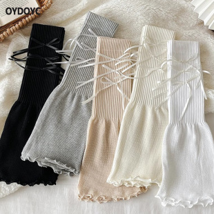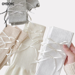 OYDOYC y2k亚文化白色jk腿套 小腿袜套女蝴蝶结丝带堆堆袜春夏薄款