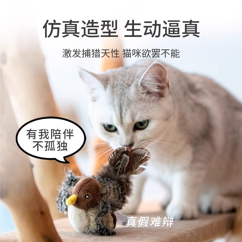 GiGwi贵为猫玩具猫咪解闷自嗨小鸟老鼠发声仿真会叫玩具鸟