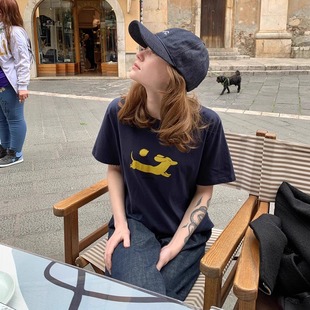 休闲撞色印花百搭正肩短款 KERNEL puppy Happy T恤 COSMOS