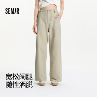 长裤 2025夏季 女裤 森马牛仔裤 薄款 女工装 纯棉阔腿裤 森柔牛仔 新款