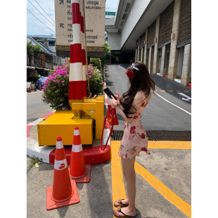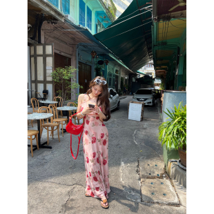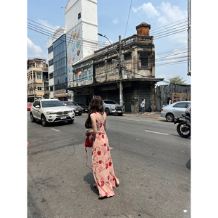 连衣裙女春季 Xinlei V领雪纺清透印花长款 玫瑰花开 裙子女 Lin