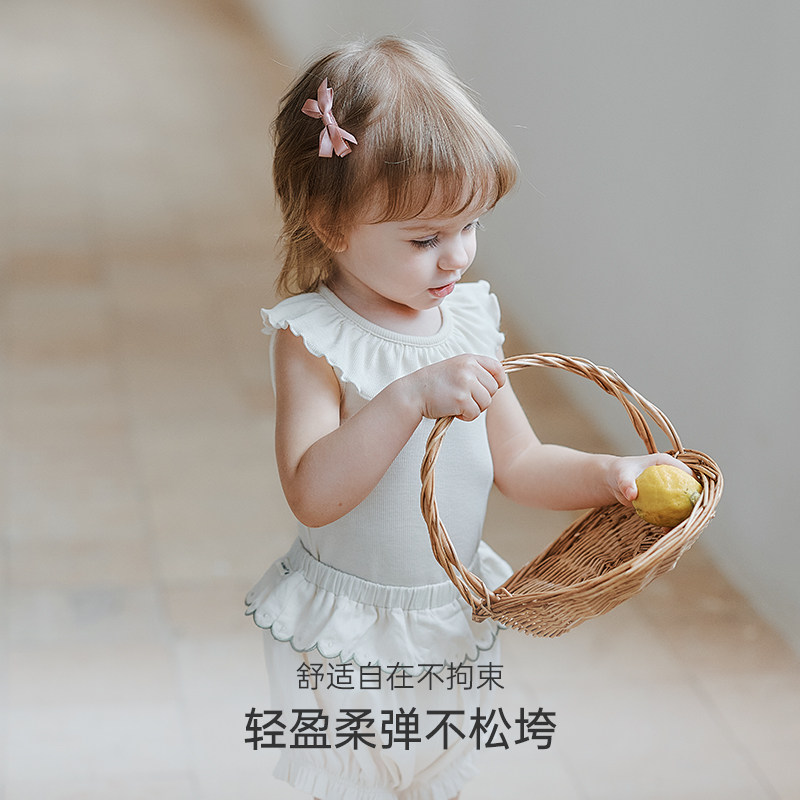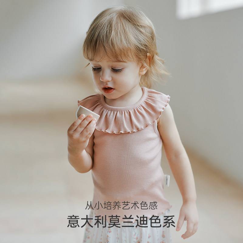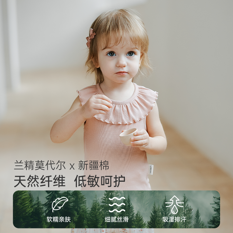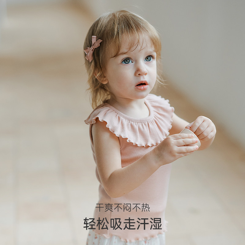 无袖 女宝宝背心荷叶领T恤莫代尔儿童打底衫 上衣 Family夏季 Oak