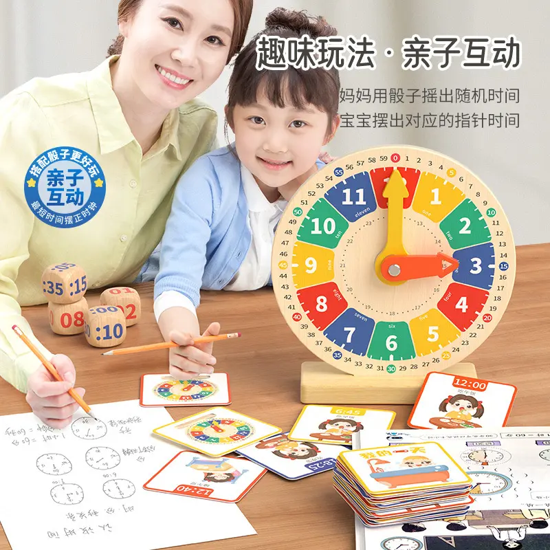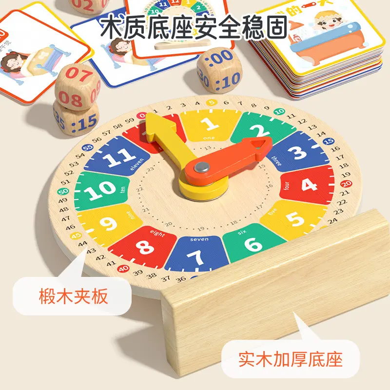 儿童木质数字时钟教具钟表模型早教智力开发学习时间闹钟益智玩具