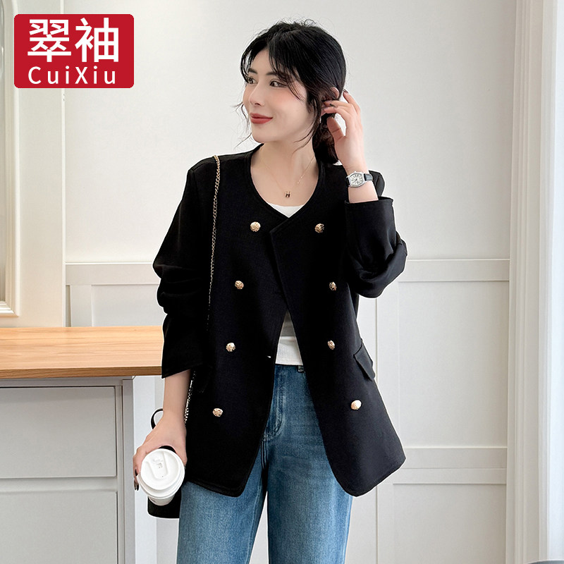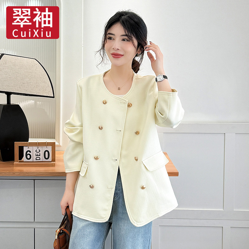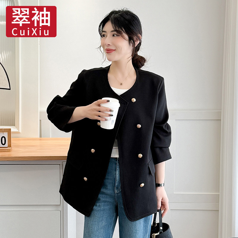 大码 春秋季 女装 双排扣小香风外套女2025新款 宽松夹克上衣 韩版 翠袖