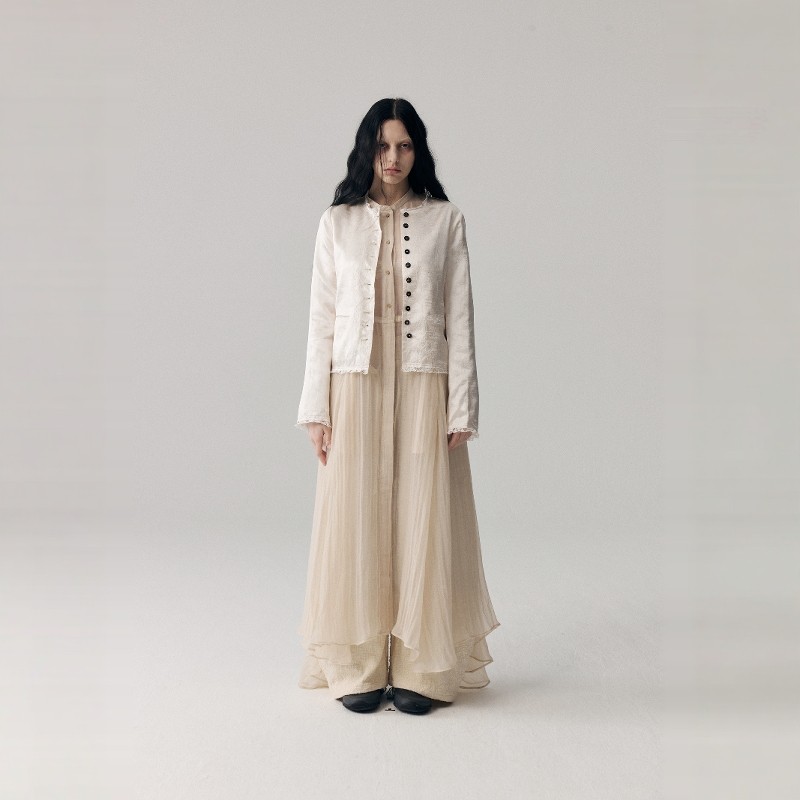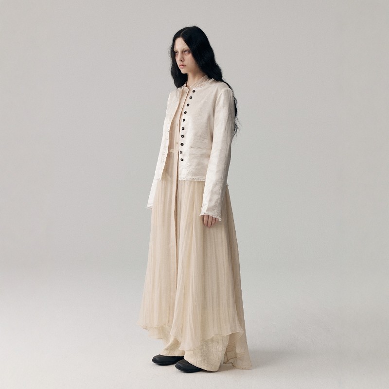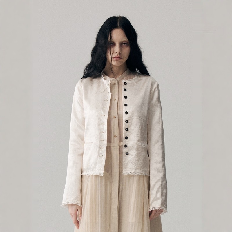 复古双面抓皱醋酸蕾丝短外套女单排扣上衣新款 VINZOO 新中式