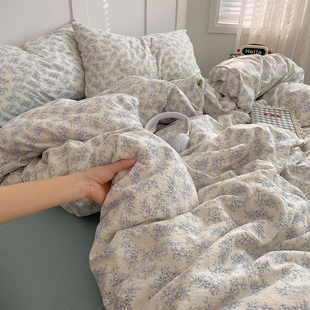 双层纱布床上用品四件套纯棉全棉床单被套被罩床笠学生宿舍三件套