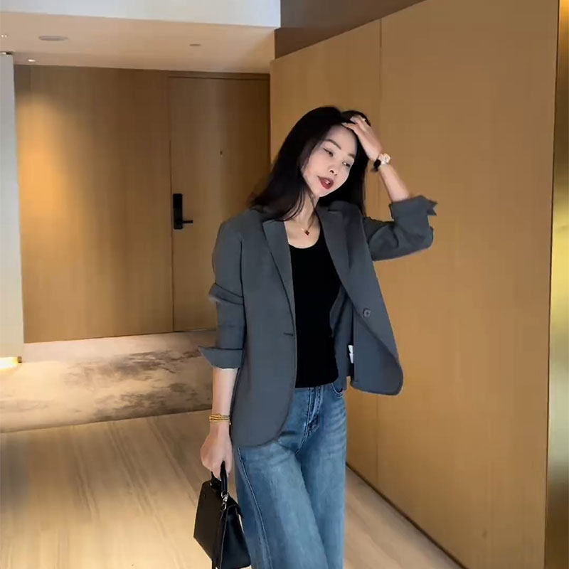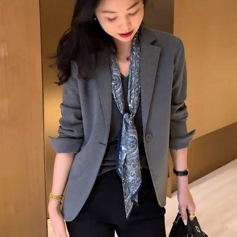 2026早春新款 外套女潮 高级感轻熟风休闲独特一粒扣小个子灰色西装