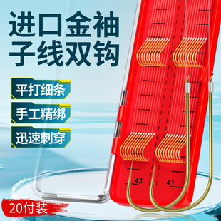 子线双钩成品黑坑防缠绕鲫鱼钩竞技袖 绑好 鱼钩正品 久岩强硬锋袖