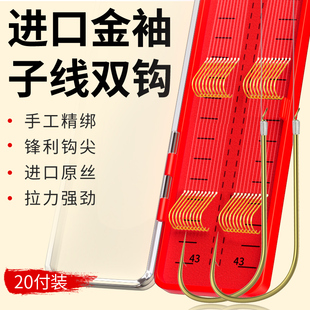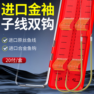 鲫鱼钩 钩正品 川泽金袖 有刺无刺子线双钩成品绑好防缠鱼钩短子线袖