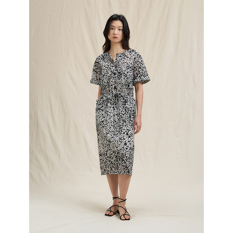 连衣裙配腰带 短款 韩国chic秋季 小众慵懒风圆领系带收腰显瘦灯笼袖