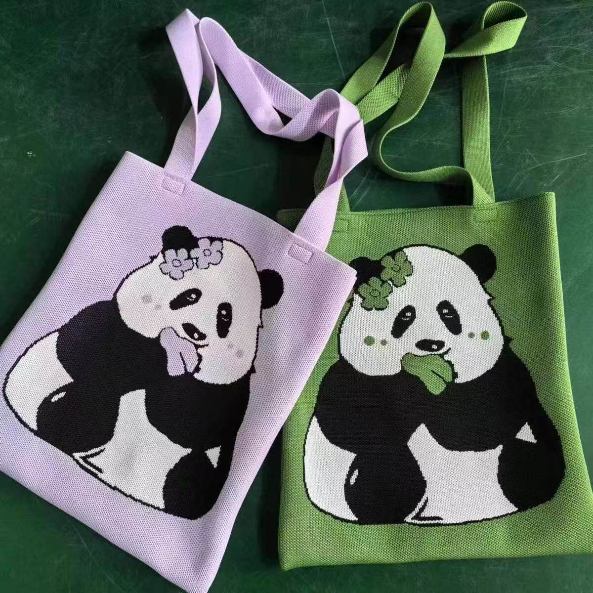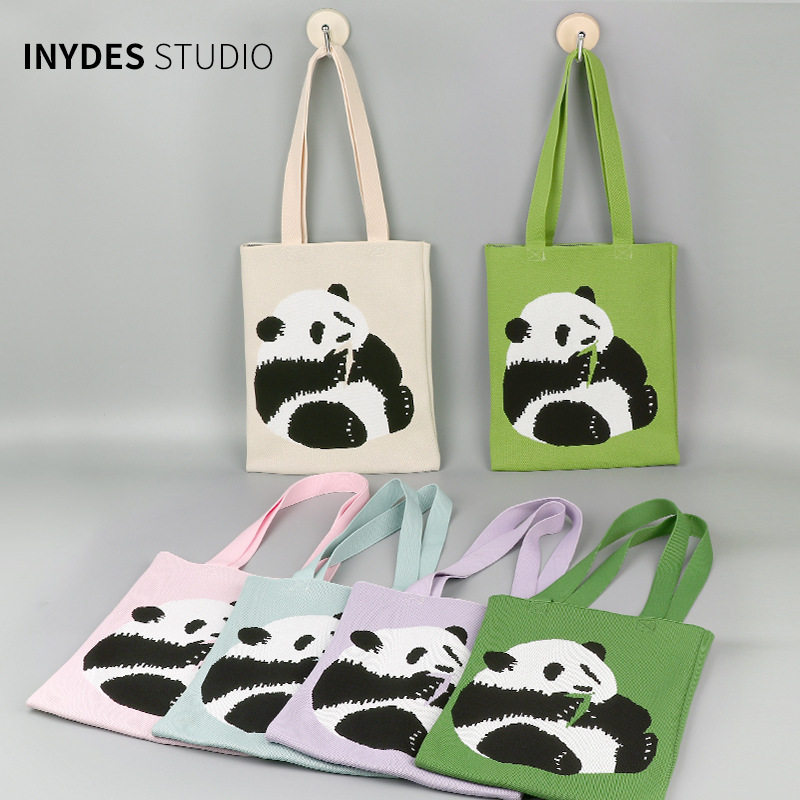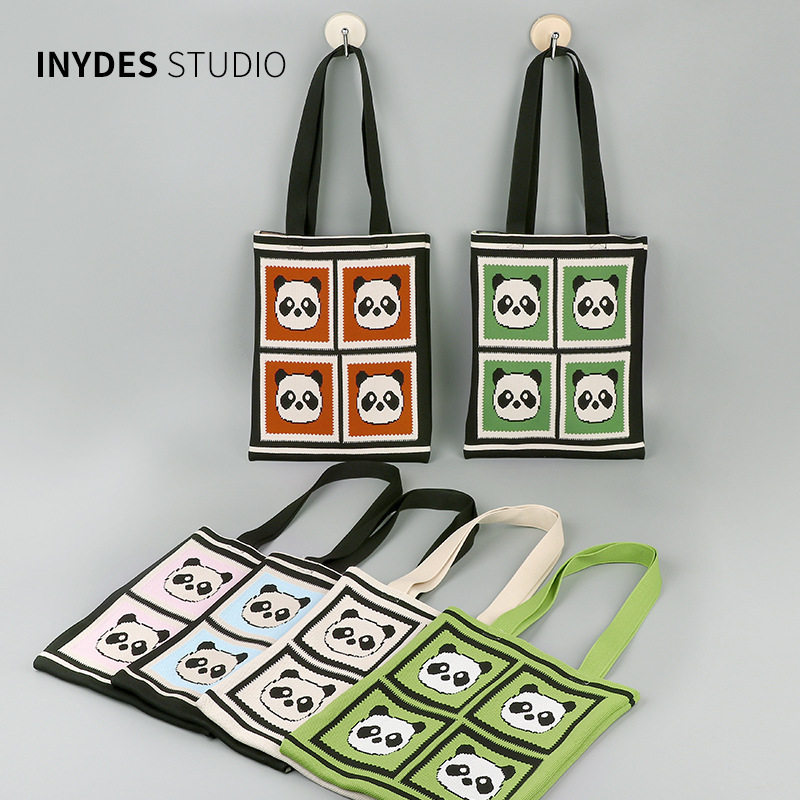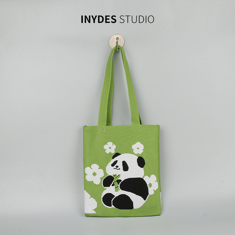 熊猫爷爷针织包大容量托特包单肩包可爱学生补课电脑笔记本袋收纳