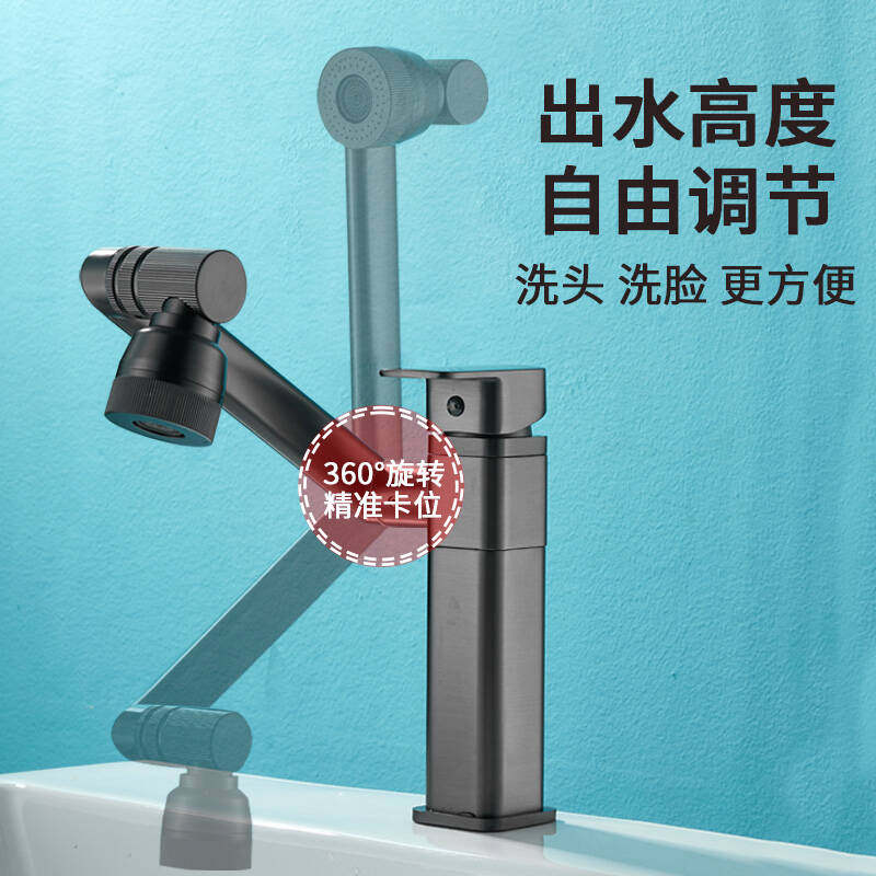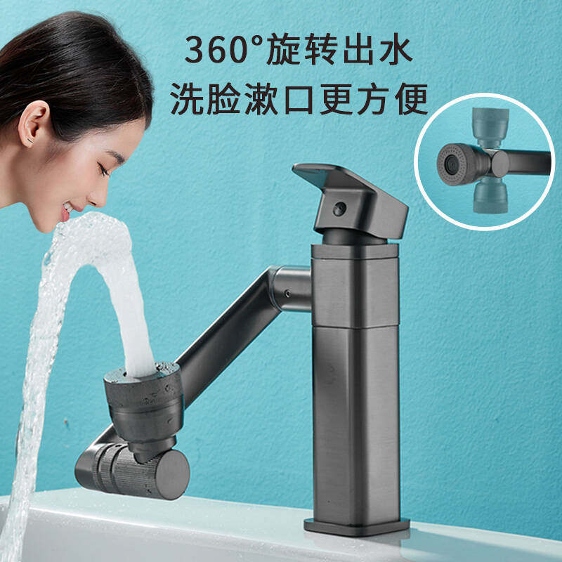 德国机械臂304不锈钢万向水龙头延伸器防溅神器卫生间面盆转接头