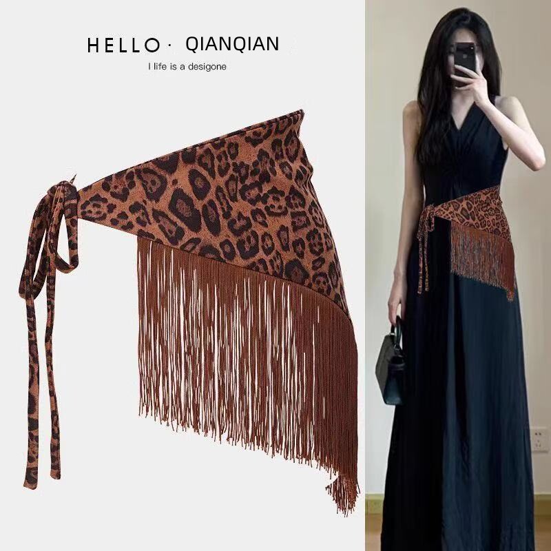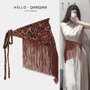 系在腰上 三角巾腰带豹纹复古高级感配裙子腰间配饰腰封y2k屁帘