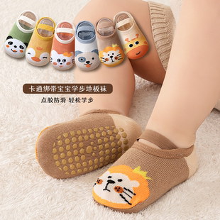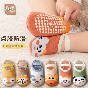 婴之行婴儿袜子秋冬款 宝宝棉绑带袜防滑底室内隔凉学步船袜早教