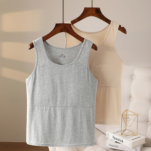 奶奶夏天防凸点中老年带胸垫背心文胸一体妈妈吊带纯棉老人内搭