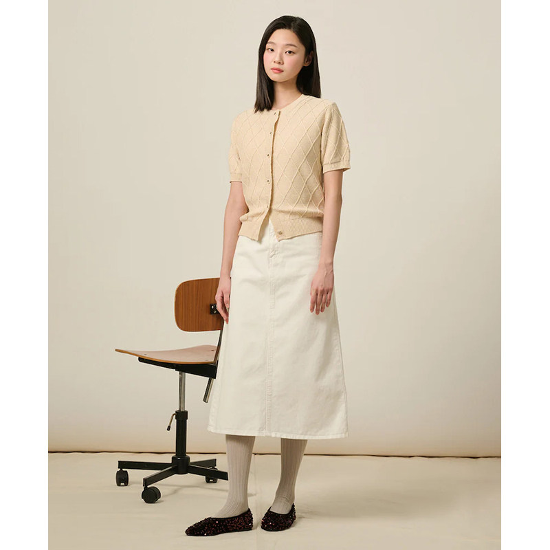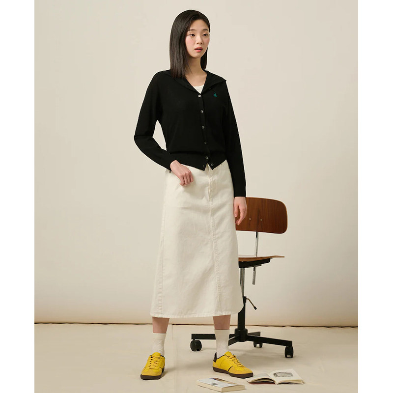 THREE 织纹漫记条纹针织毛呢半身裙腰部折堆叠一步裙 GOOOD殷三吉