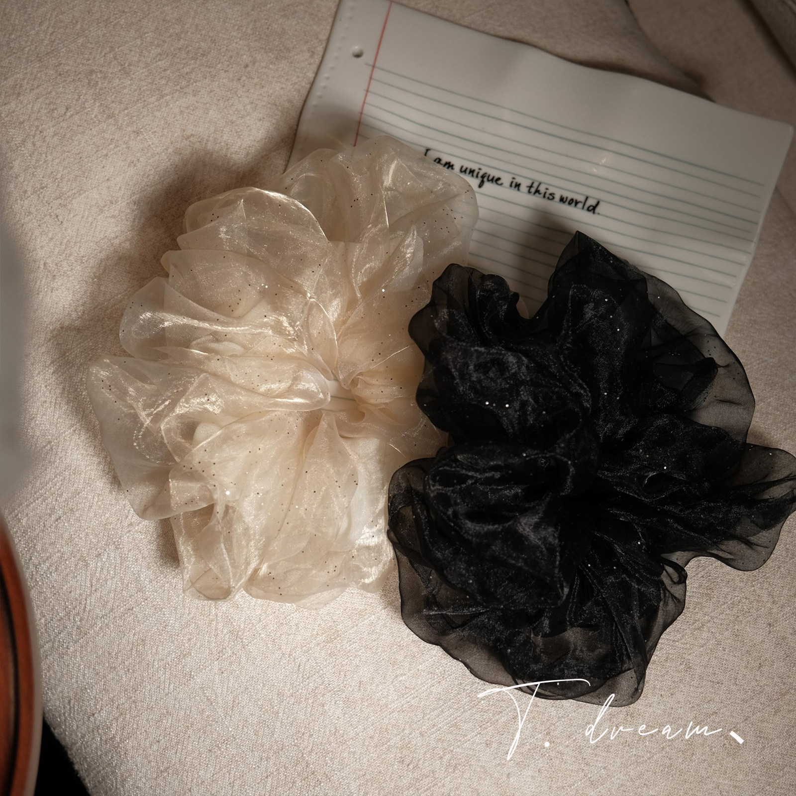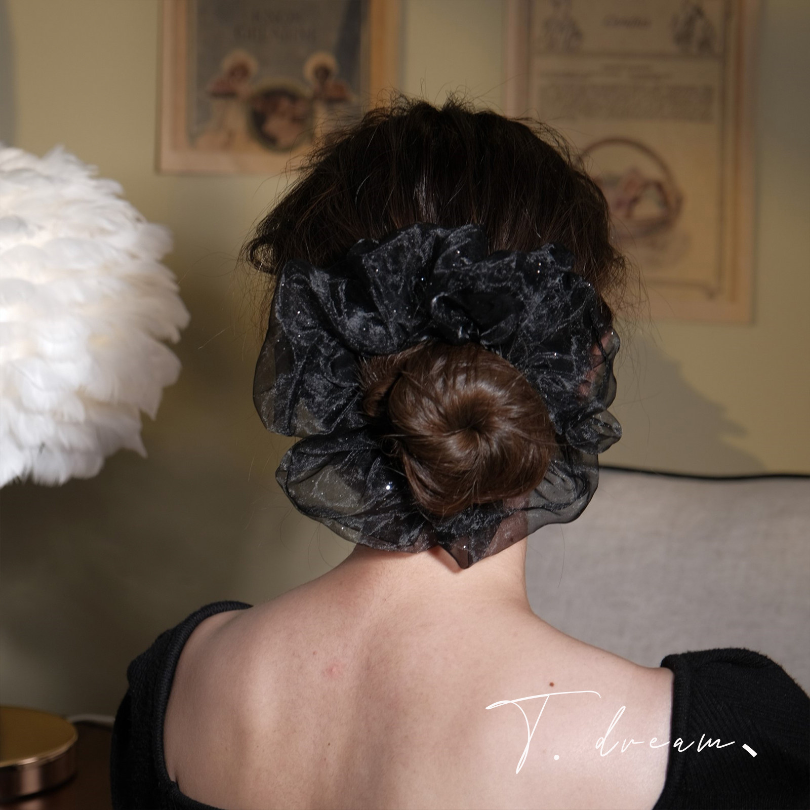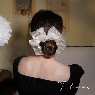 复古头绳头饰头花 双层珠光纱发圈发饰女丸子头法式 月光童话
