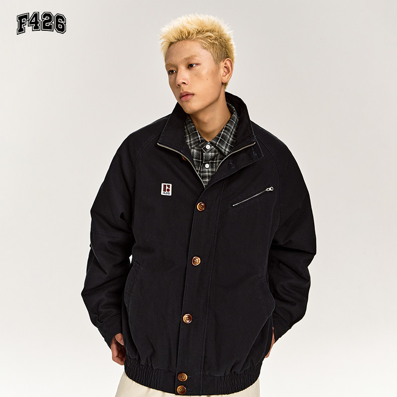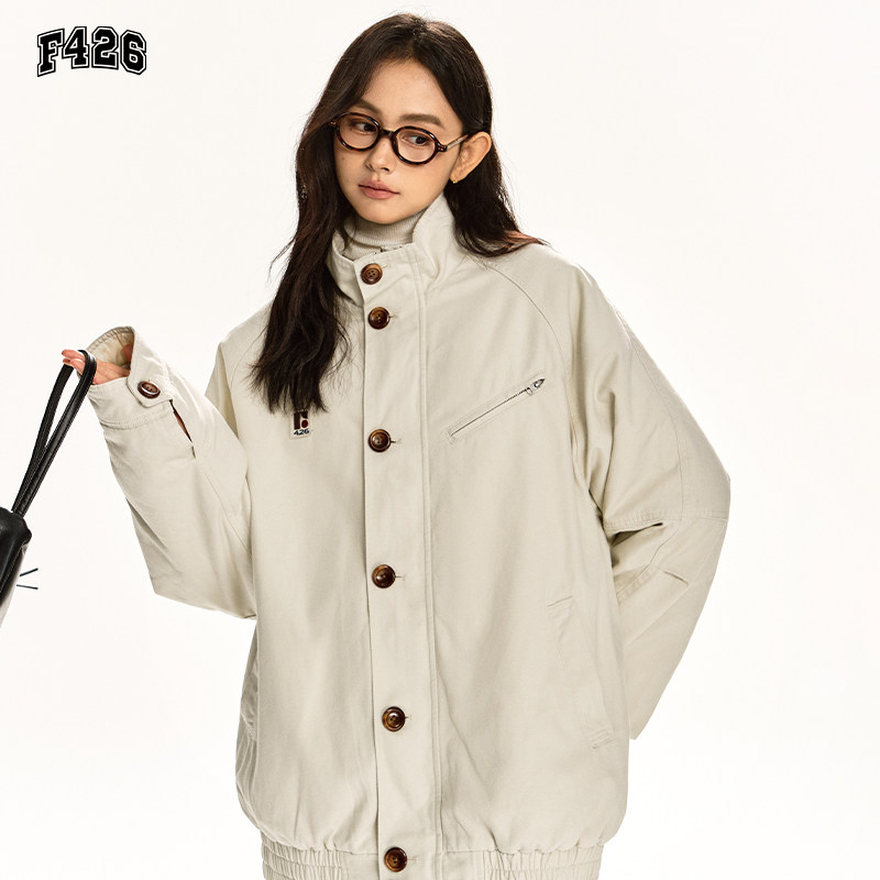 宽松刺绣标立领水洗夹克棉服 F426奥莱店国潮春季 棉服系列