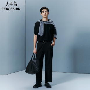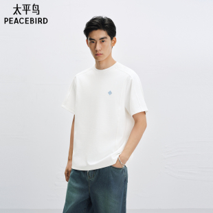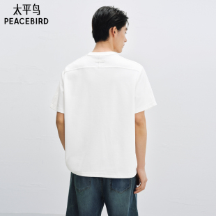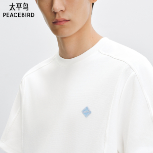 重磅 白色半袖 太平鸟男装 T恤夏宽松分割线体恤时尚 肌理感短袖