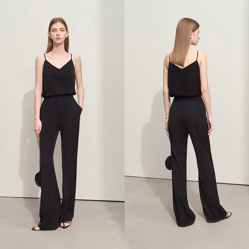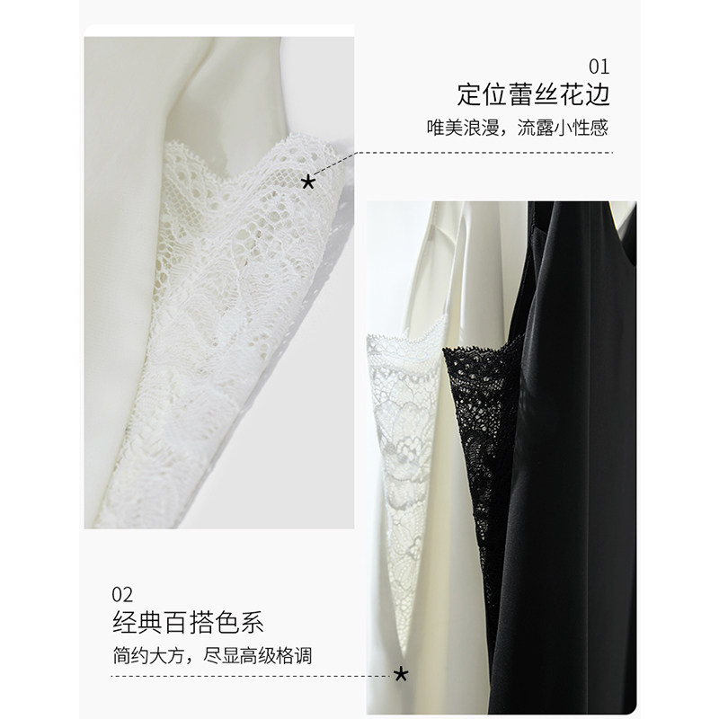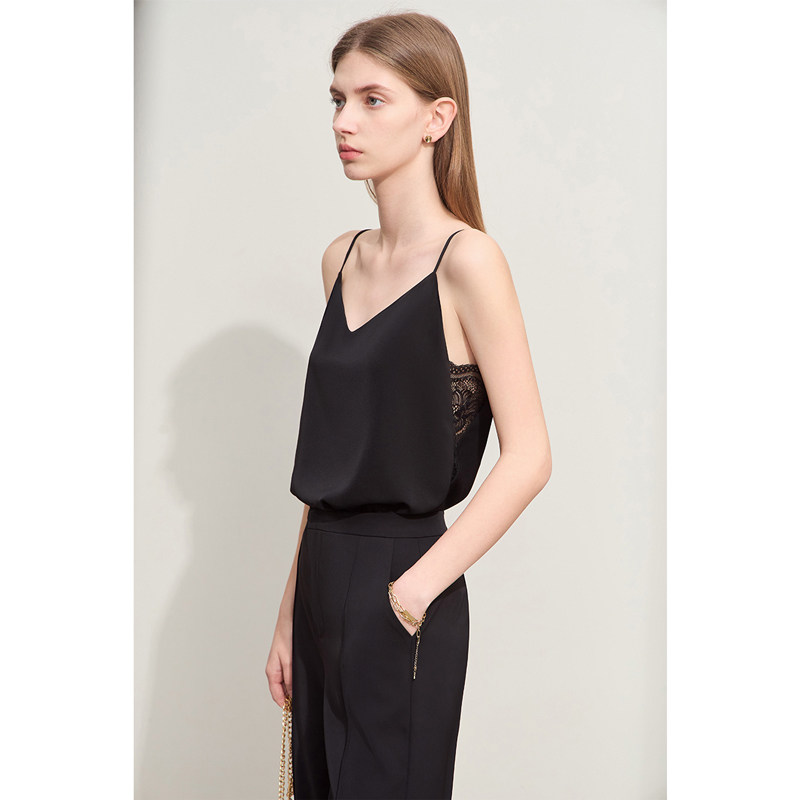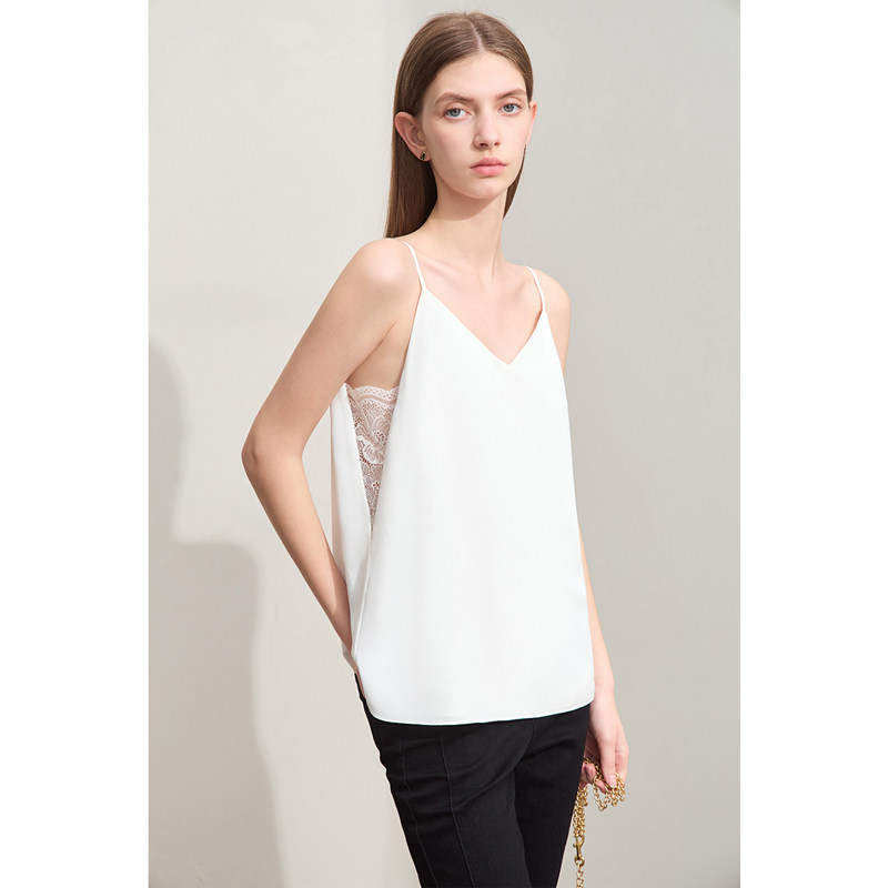 Amii2026夏新款 浪漫清凉百搭拼蕾丝V领吊带背心女内搭雪纺上衣