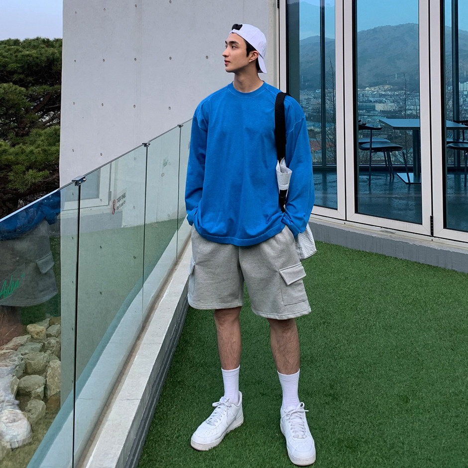 体恤 长袖 简约纯色内搭秋冬圆领卫衣男加绒加厚休闲大码 上衣打底衫