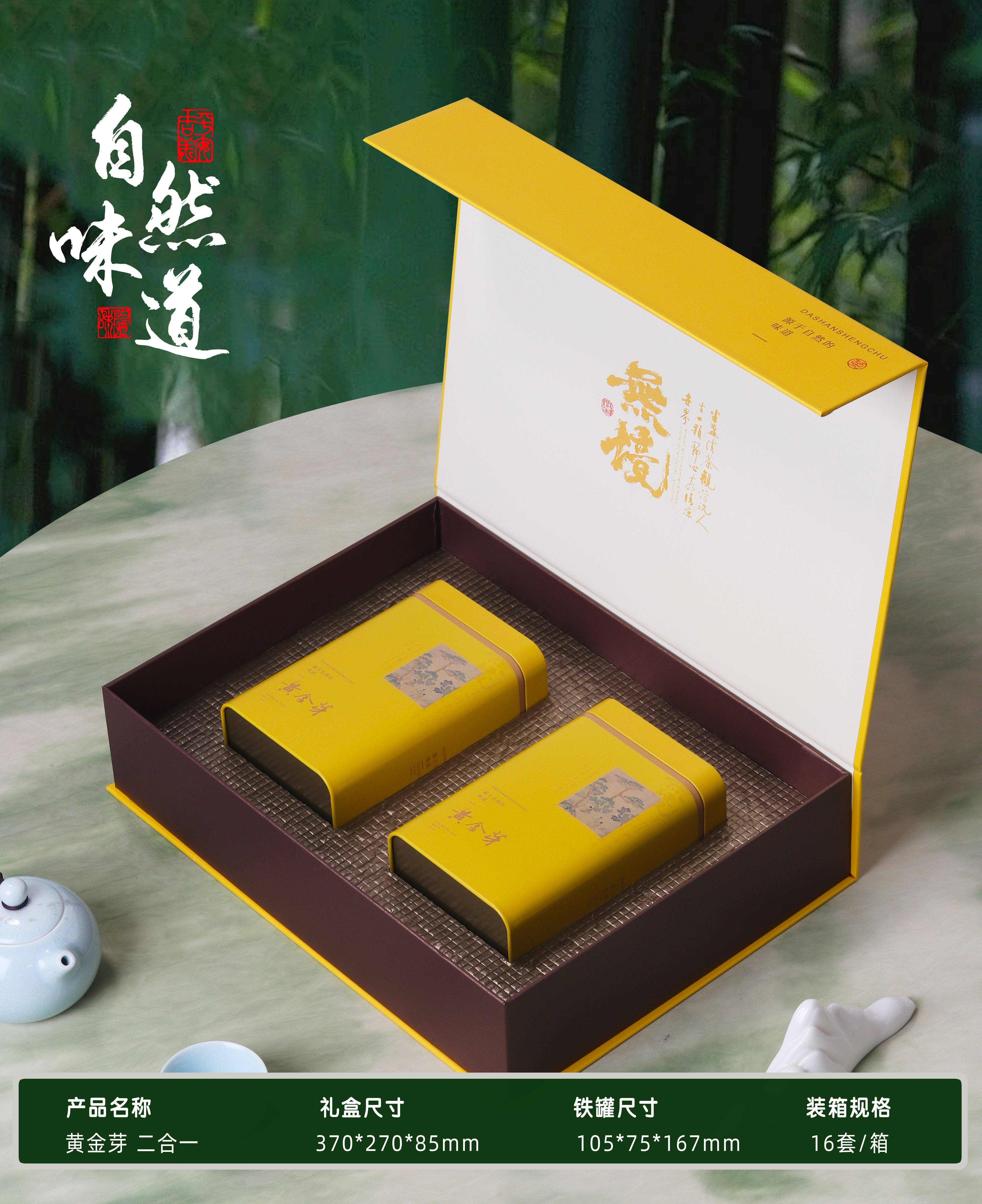 包邮 盒空礼盒茶叶盒方罐铁罐礼品盒送内袋 山水250g黄金芽包装 新款