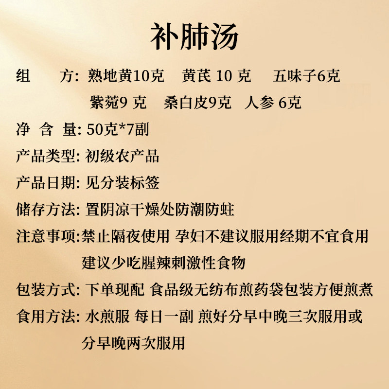 补肺汤人参紫苑黄芪熟地五味子桑白皮中药材秋冬进补肺文小叔推荐