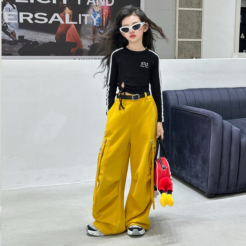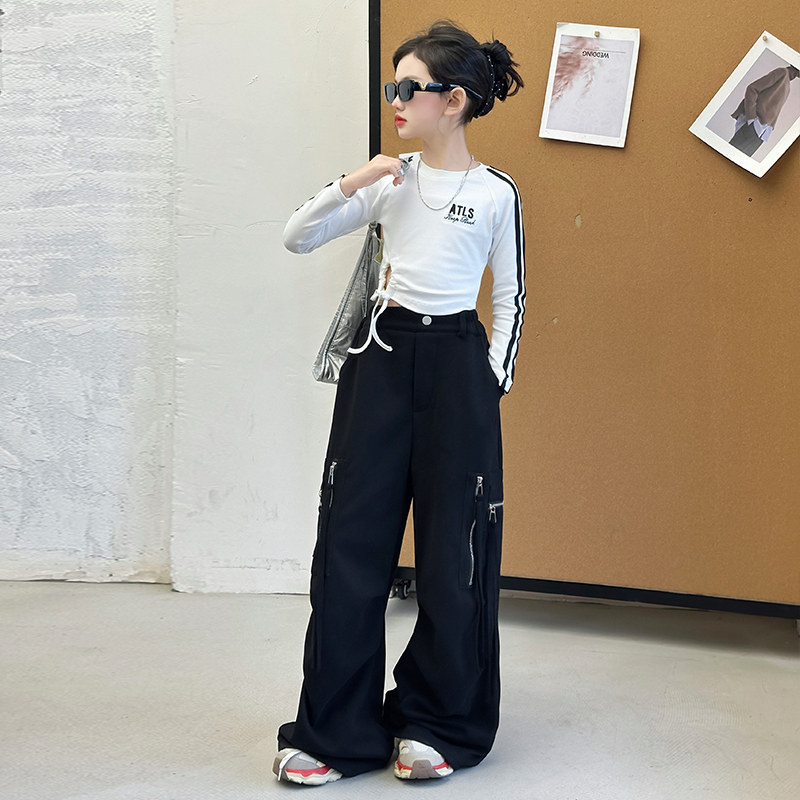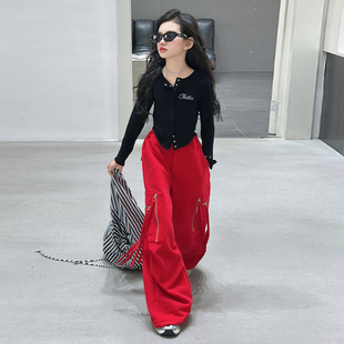 显瘦垂感休闲裤 格雷系加绒黑灰色阔腿慵懒风格 大码 子女秋冬季 子裤