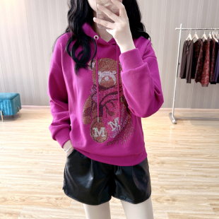 2025新款 长袖 爆款 洋气减龄连帽春季 t恤上衣 时尚 春秋女士卫衣女款
