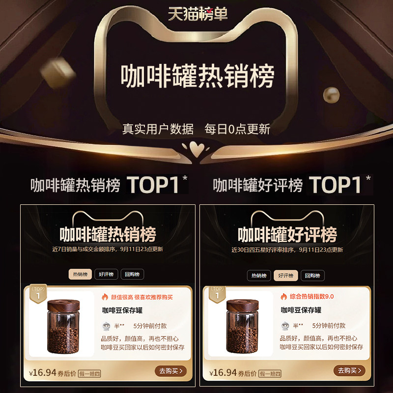川岛屋咖啡豆密封罐食品级玻璃抽真空咖啡粉专用保存罐奶粉储存罐