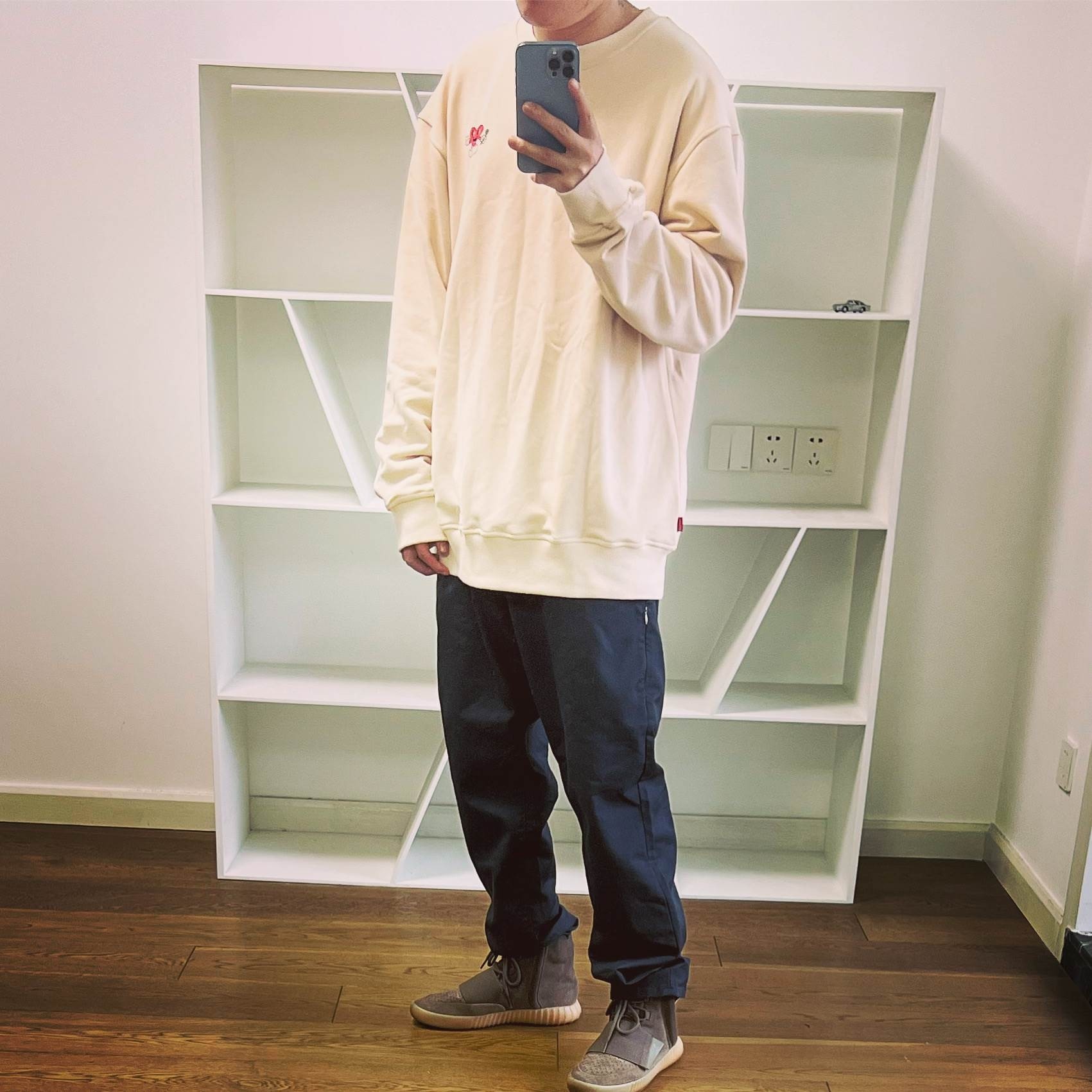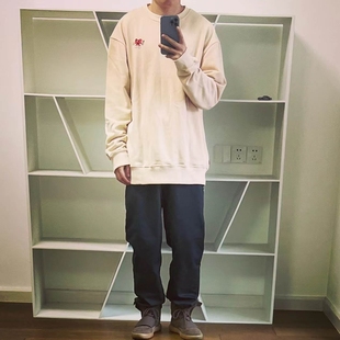 德绒打底T恤衫 卫衣男冬潮牌宽松大码 内搭白色亨利领长袖 V37基础款