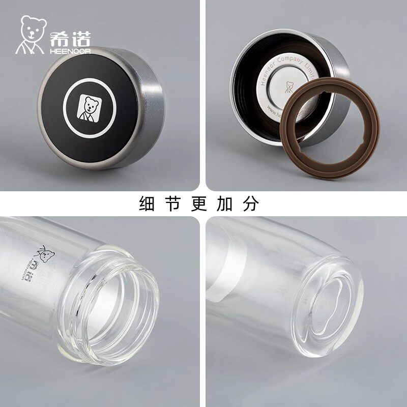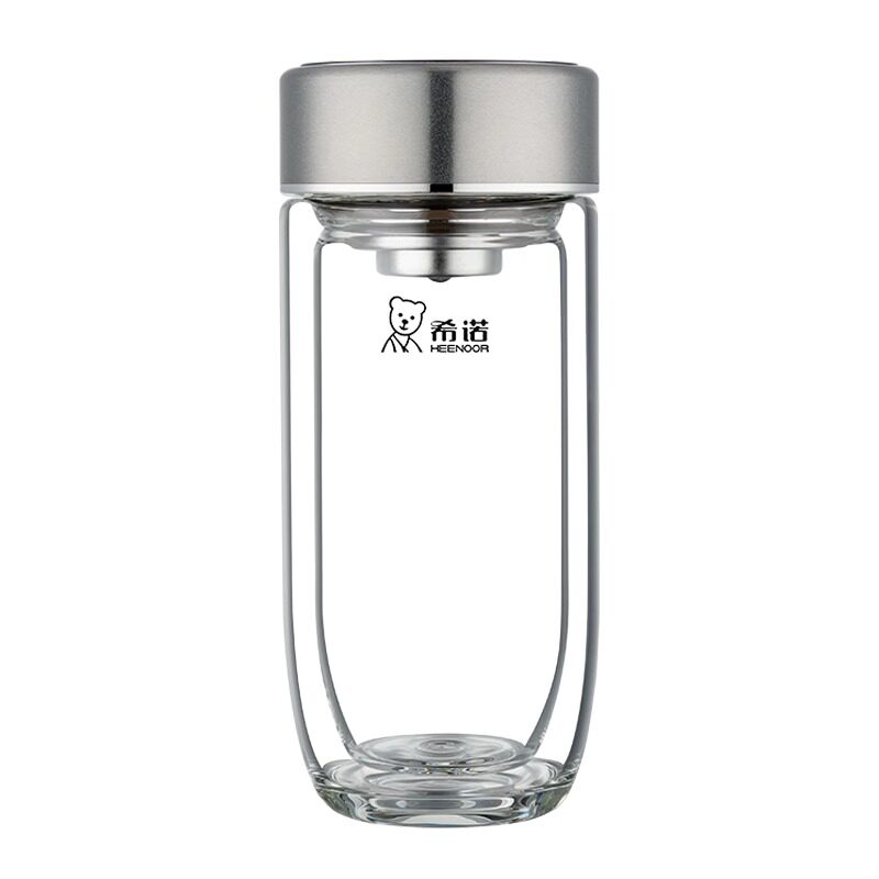 希乐玻璃杯茶杯男士 泡茶专用水杯大容量高硼硅茶水分离杯带盖杯子
