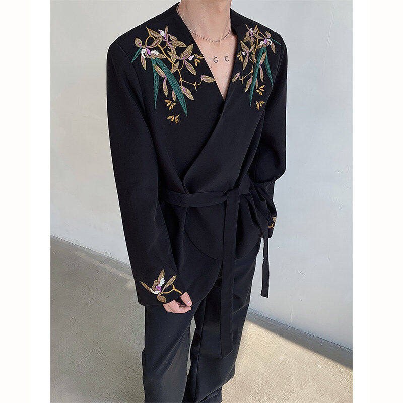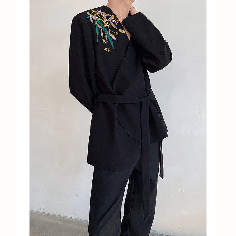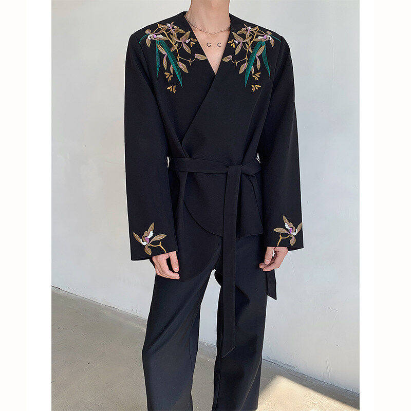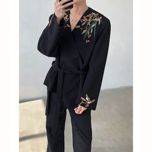 男设计感小众高级西服垫肩痞帅舞台装 春秋新中式 重工刺绣印花西装