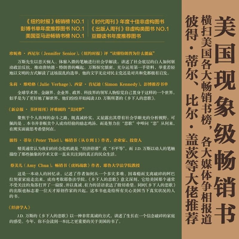 修订乡下人 万斯可能在未来不久成为美国总统 悲歌中文版 读懂特朗普为什么赢 纽约时报畅销书榜持续在榜dr J.D.万斯 2025年新版