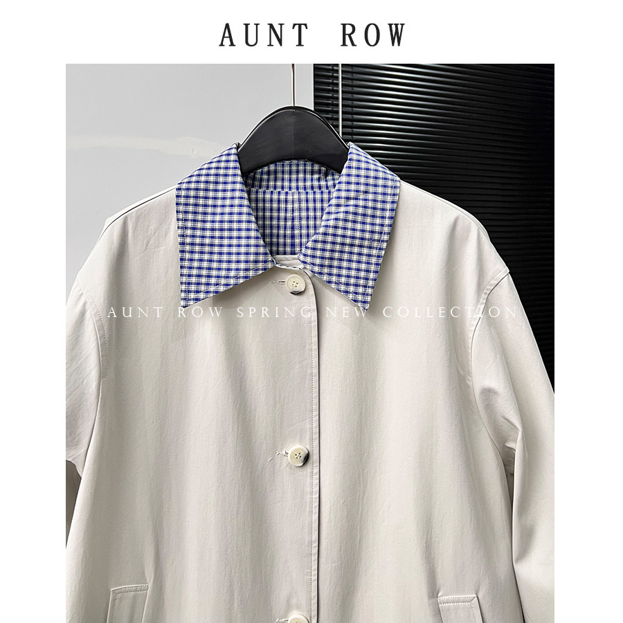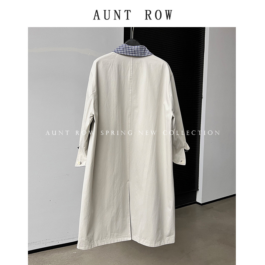 AuntRow25SS 岛国进口高密斜纹棉&翻领格纹撞色直身风衣 英伦风华