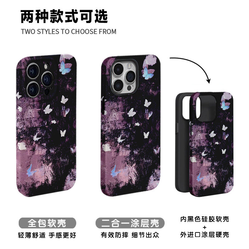 15pro手机壳华为P70软OPPOreon12苹果14vivoS20一加ACE3V红米note14 复古梦幻艺术蝴蝶适用iPhone16 洒脱