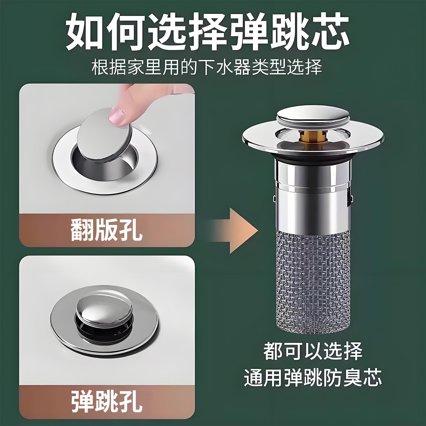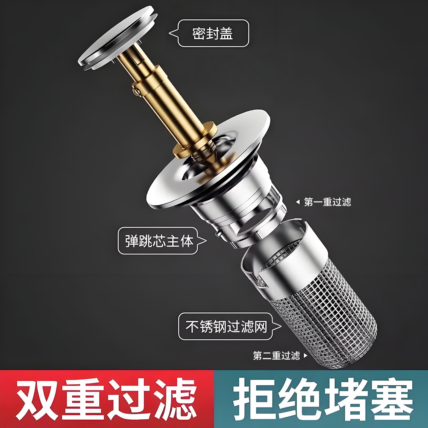 洗手盆漏水塞子洗脸盆下水器配件面盆弹跳芯配件按压式 水槽塞防臭