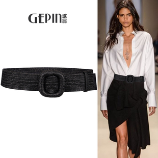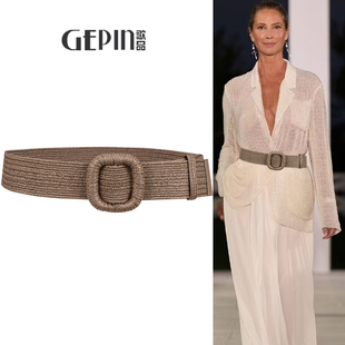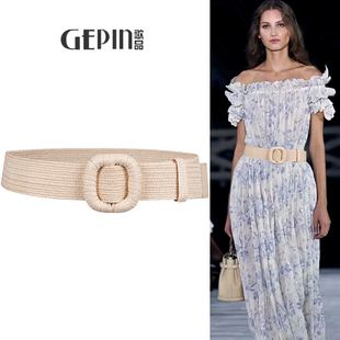 波西米亚度假风草编织宽腰带百搭装 腰封 饰配连衣裙子收腰2025新款