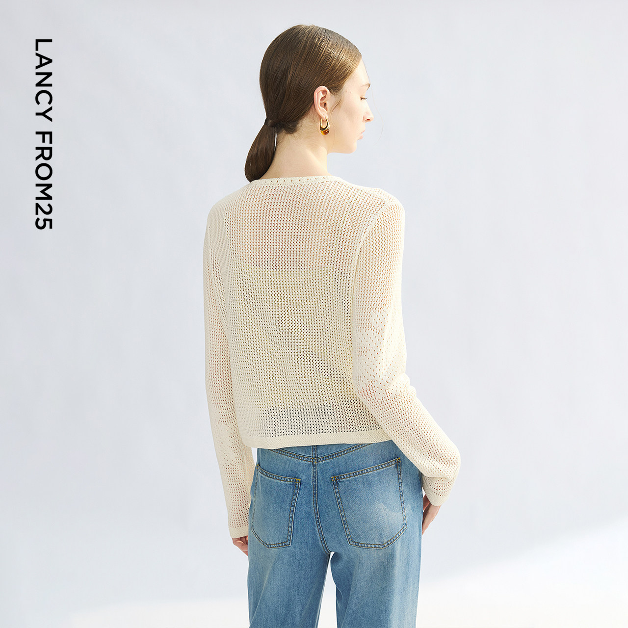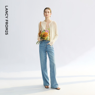 新款 朗姿25镂空钩花薄款 外搭气质夏季 米白色罩衫 通勤上衣 针织开衫