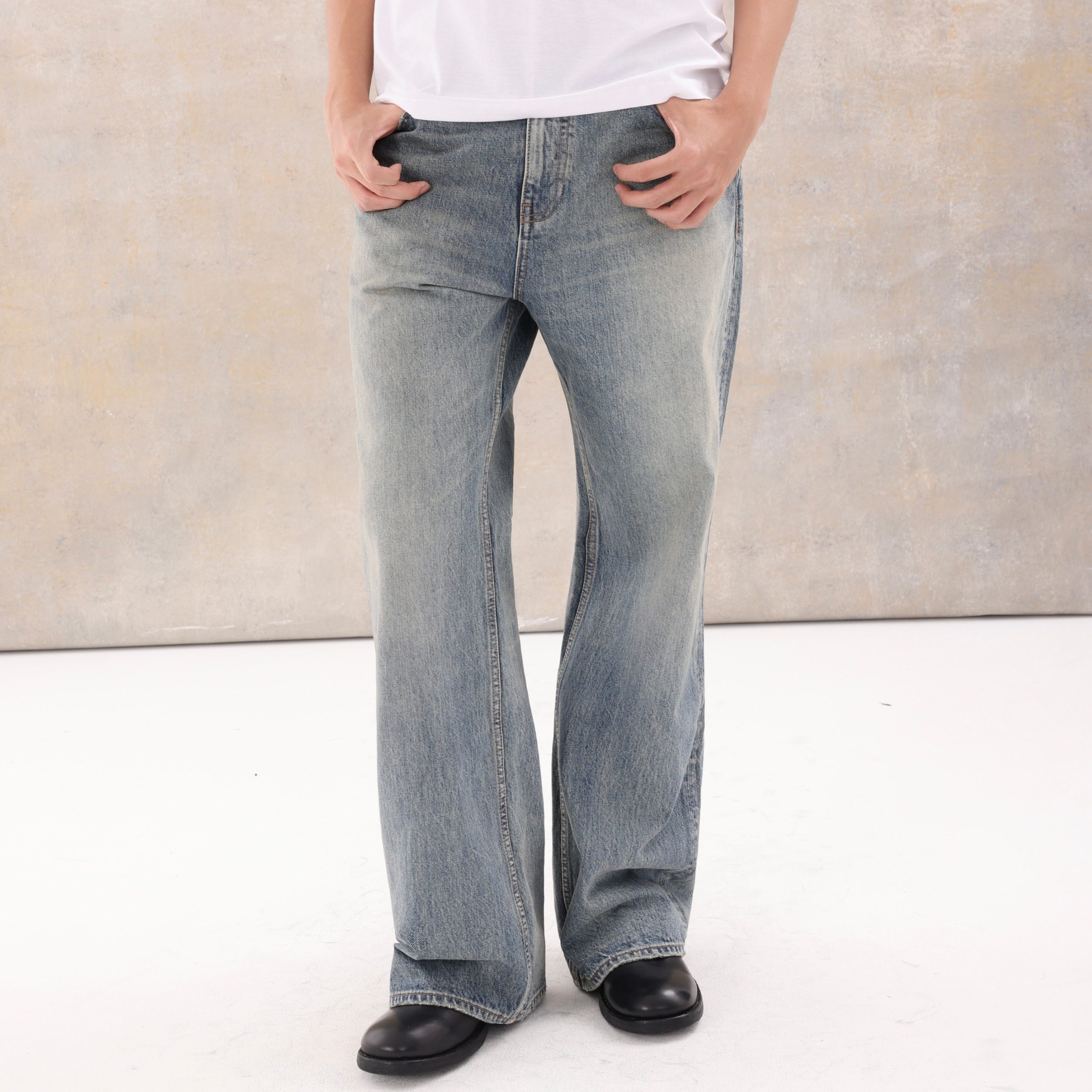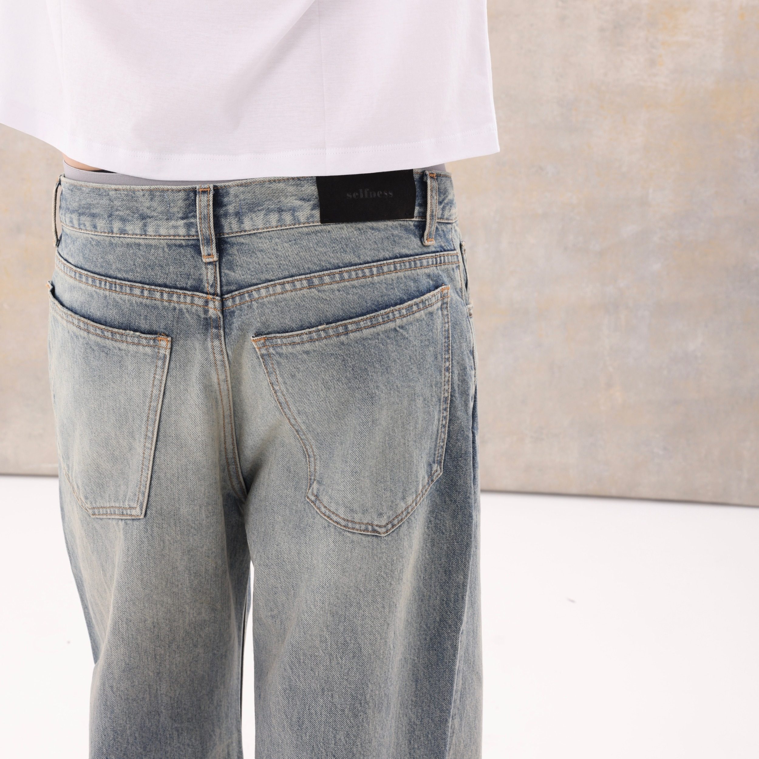 Denim日产冈山面料复古蓝水洗宽松微喇牛仔裤 Selfness Kaihara