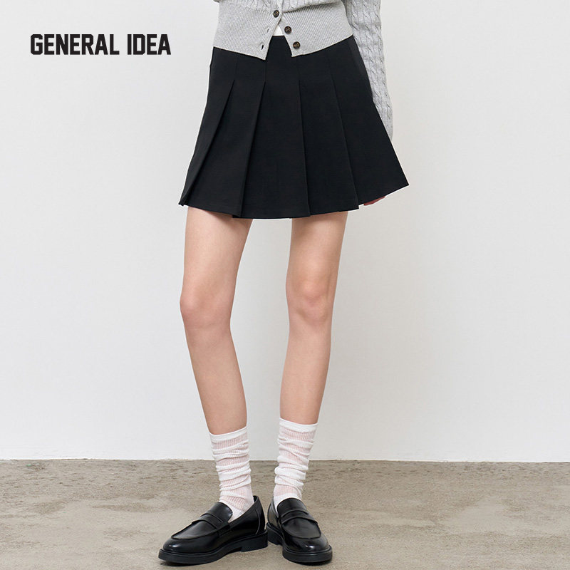 棕咖色加厚毛呢短裙女半身裙秋冬新款 灰黑百褶裙 配腰带小个子西装