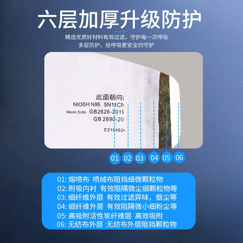 五层活性碳滤片 pm2.5口罩滤芯 防尘防雾霾活性炭滤片 10片装
