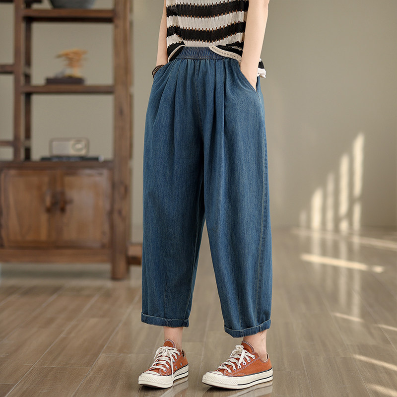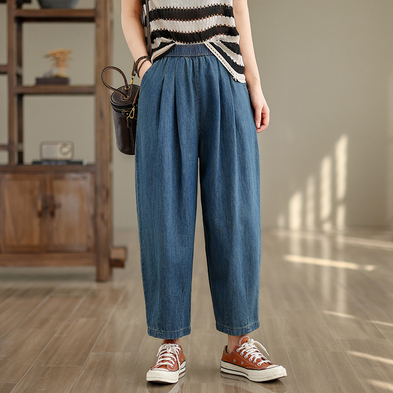 女休闲百搭九分老爹裤 型水洗做旧牛仔裤 复古调性宽松版 小菲家