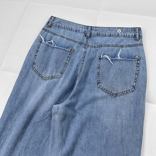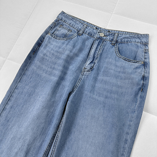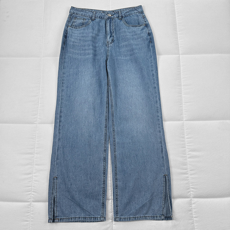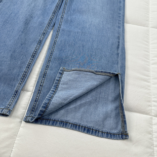 包邮 韩版 麦 无弹直筒裤 休闲百搭水洗高腰开衩牛仔裤 xun春夏薄款