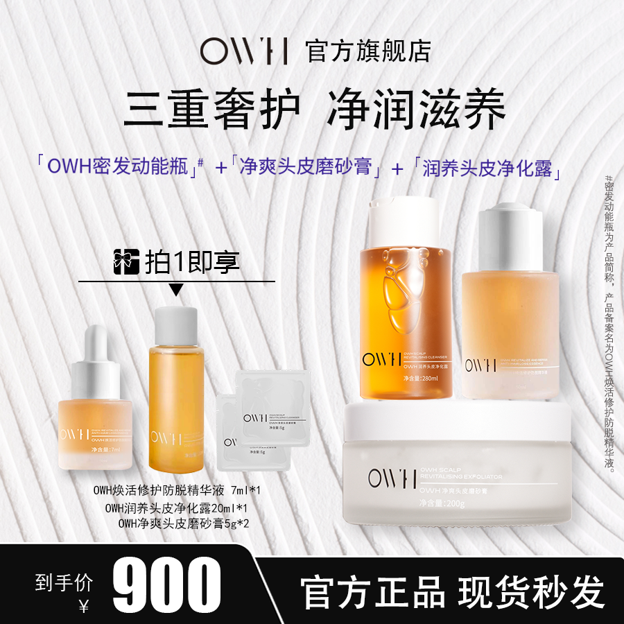 OWH密发动能瓶 净爽头皮磨砂膏清洁防脱修护毛囊套组 头皮净化露